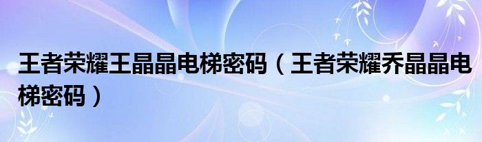 王者荣耀王晶晶电梯密码(王者荣耀乔晶晶电梯密码)