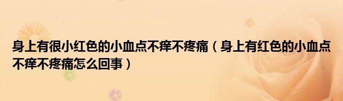大家好,linda来为大家解答以上的问题。身上有很小红色的小血点不痒不疼痛,身上有红色的小血点不痒不疼痛怎么回事很多人还不知道,现在让我们一起来看看吧!