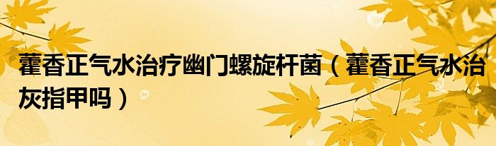 大家好,linda来为大家解答以上的问题。藿香正气水治疗幽门螺旋杆菌,藿香正气水治灰指甲吗很多人还不知道,现在让我们一起来看看吧!
