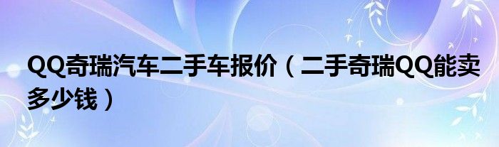 大家好,小常来为大家解答以下问题,对于QQ奇瑞汽车二手车报价,二手奇瑞QQ能卖多少钱很多人还不知道,今天让我们一起来看看吧!