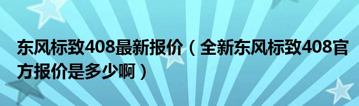 东风标致408最新报价(全新东风标致408官方报价是多少啊)
