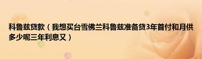 1,我想买台雪佛兰科鲁兹准备贷3年首付和月供多少呢三年利息又:与其自己在网上咨询,我建议你去一趟4s点,让他们给你出一份详细的表单,包括首付多少合适,贷多少款,利息是多少,都出来了,还很简单