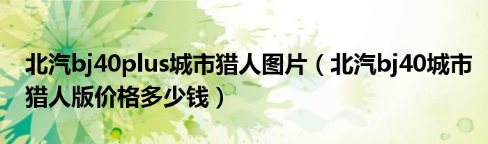 大家好,阳阳来为大家讲解下。北汽bj40plus城市猎人图片,北汽bj40城市猎人版价格多少钱很多人还不知道,现在让我们一起来看看吧!