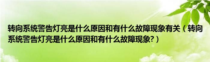 大家好,小美来为大家解答以上问题。转向系统警告灯亮是什么原因和有什么故障现象有关,转向系统警告灯亮是什么原因和有什么故障现象?很多人还不知道,现在让我们一起来看看吧!