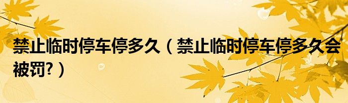 大家好,小美来为大家解答以上问题。禁止临时停车停多久,禁止临时停车停多久会被罚?很多人还不知道,现在让我们一起来看看吧!