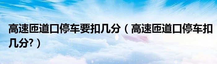 大家好,小美来为大家解答以上问题。高速匝道口停车要扣几分,高速匝道口停车扣几分?很多人还不知道,现在让我们一起来看看吧!