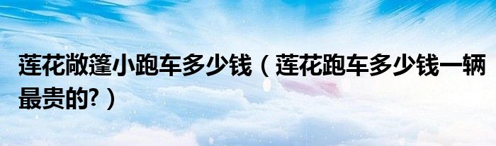 莲花敞篷小跑车多少钱(莲花跑车多少钱一辆最贵的?)