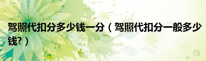 大家好,小美来为大家解答以上问题。驾照代扣分多少钱一分,驾照代扣分一般多少钱?很多人还不知道,现在让我们一起来看看吧!