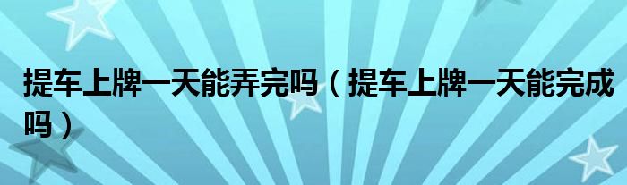 大家好,小美来为大家解答以上问题。提车上牌一天能弄完吗,提车上牌一天能完成吗很多人还不知道,现在让我们一起来看看吧!