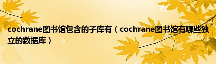 关于cochrane图书馆包含的子库有,cochrane图书馆有哪些独立的数据库这个很多人还不知道,今天菲菲来为大家解答以上的问题,现在让我们一起来看看吧!