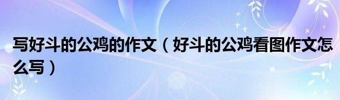 关于写好斗的公鸡的作文,好斗的公鸡看图作文怎么写这个很多人还不知道,今天菲菲来为大家解答以上的问题,现在让我们一起来看看吧!