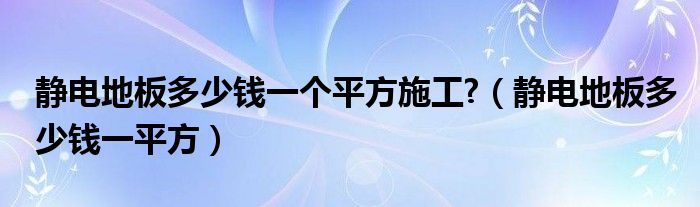 关于静电地板多少钱一个平方施工?,静电地板多少钱一平方这个很多人还不知道,今天菲菲来为大家解答以上的问题,现在让我们一起来看看吧!