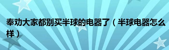 关于奉劝大家都别买半球的电器了,半球电器怎么样这个很多人还不知道,今天菲菲来为大家解答以上的问题,现在让我们一起来看看吧!