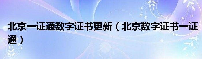 关于北京一证通数字证书更新,北京数字证书一证通这个很多人还不知道,今天菲菲来为大家解答以上的问题,现在让我们一起来看看吧!