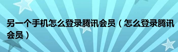 大家好,小晋来为大家解答以下问题,关于另一个手机怎么登录腾讯会员,怎么登录腾讯会员很多人还不知道,今天让我们一起来看看吧!