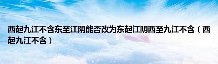 关于西起九江不含东至江阴能否改为东起江阴西至九江不含,西起九江不含这个很多人还不知道,今天菲菲来为大家解答以上的问题,现在让我们一起来看看吧!
