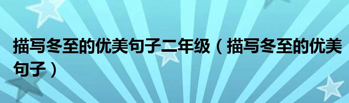 大家好,来宝来为大家解答以下问题,描写冬至的优美句子二年级,描写冬至的优美句子很多人还不知道,今天让我们一起来看看吧!