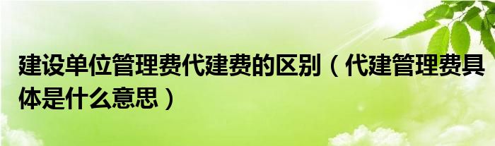 关于建设单位管理费代建费的区别,代建管理费具体是什么意思这个很多人还不知道,今天菲菲来为大家解答以上的问题,现在让我们一起来看看吧!