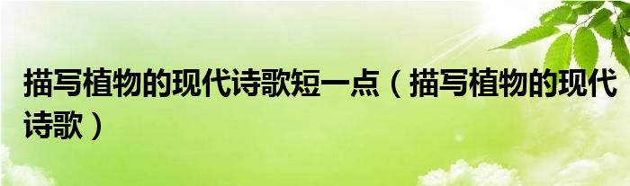 关于描写植物的现代诗歌短一点,描写植物的现代诗歌这个很多人还不知道,今天菲菲来为大家解答以上的问题,现在让我们一起来看看吧!