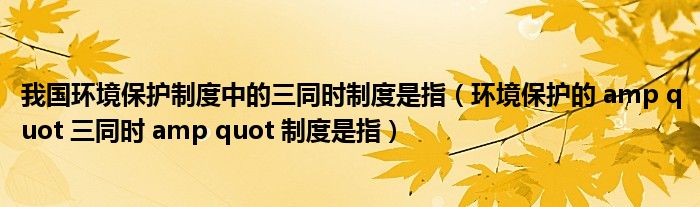 关于我国环境保护制度中的三同时制度是指,环境保护的 amp quot 三同时 amp quot 制度是指这个很多人还不知道,今天菲菲来为大家解答以上的问题,现在让我们一起来看看吧!