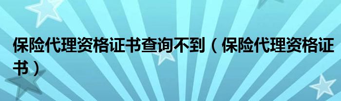 关于保险代理资格证书查询不到,保险代理资格证书这个很多人还不知道,今天菲菲来为大家解答以上的问题,现在让我们一起来看看吧!