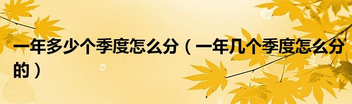 关于一年多少个季度怎么分,一年几个季度怎么分的这个很多人还不知道,今天菲菲来为大家解答以上的问题,现在让我们一起来看看吧!