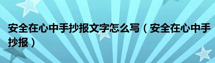 关于安全在心中手抄报文字怎么写,安全在心中手抄报这个很多人还不知道,今天菲菲来为大家解答以上的问题,现在让我们一起来看看吧!