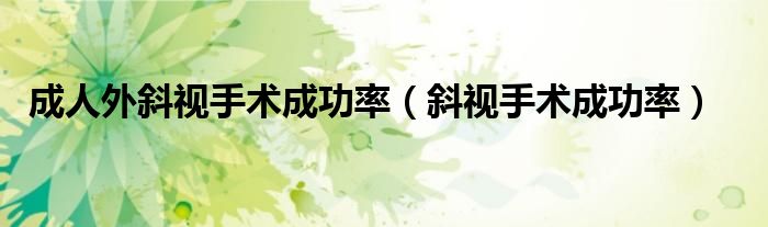关于成人外斜视手术成功率,斜视手术成功率这个很多人还不知道,今天菲菲来为大家解答以上的问题,现在让我们一起来看看吧!