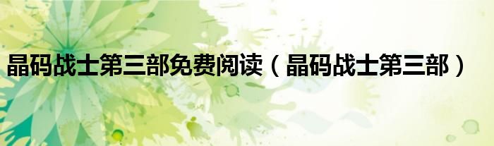 关于晶码战士第三部免费阅读,晶码战士第三部这个很多人还不知道,今天菲菲来为大家解答以上的问题,现在让我们一起来看看吧!