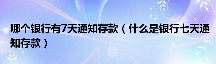 关于哪个银行有7天通知存款,什么是银行七天通知存款这个很多人还不知道,今天菲菲来为大家解答以上的问题,现在让我们一起来看看吧!