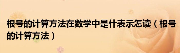 关于根号的计算方法在数学中是什表示怎读,根号的计算方法这个很多人还不知道,今天菲菲来为大家解答以上的问题,现在让我们一起来看看吧!