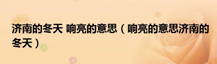 关于济南的冬天 响亮的意思,响亮的意思济南的冬天这个很多人还不知道,今天菲菲来为大家解答以上的问题,现在让我们一起来看看吧!