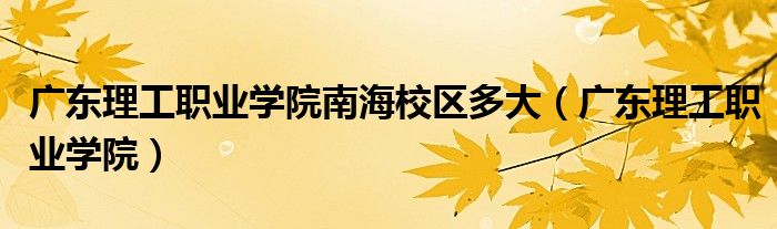 关于广东理工职业学院南海校区多大,广东理工职业学院这个很多人还不知道,今天菲菲来为大家解答以上的问题,现在让我们一起来看看吧!