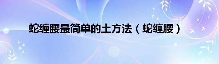 关于蛇缠腰最简单的土方法,蛇缠腰这个很多人还不知道,今天菲菲来为大家解答以上的问题,现在让我们一起来看看吧!