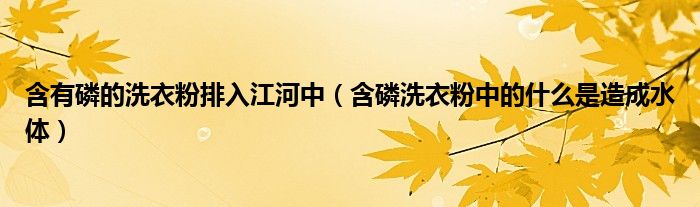 关于含有磷的洗衣粉排入江河中,含磷洗衣粉中的什么是造成水体这个很多人还不知道,今天菲菲来为大家解答以上的问题,现在让我们一起来看看吧!