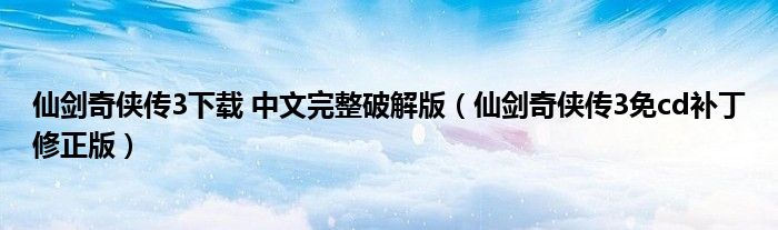 关于仙剑奇侠传3下载 中文完整破解版,仙剑奇侠传3免cd补丁修正版这个很多人还不知道,今天菲菲来为大家解答以上的问题,现在让我们一起来看看吧!
