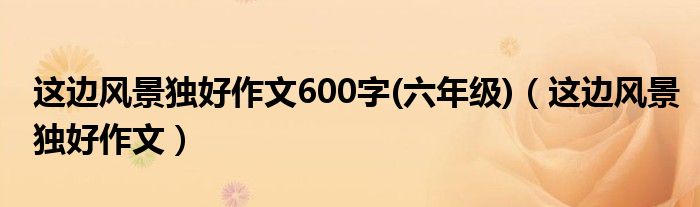 关于这边风景独好作文600字(六年级),这边风景独好作文这个很多人还不知道,今天菲菲来为大家解答以上的问题,现在让我们一起来看看吧!