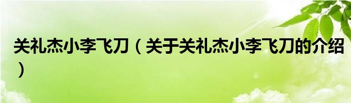 大家好,今天小乐来为大家解答以上的问题。关礼杰小李飞刀,关于关礼杰小李飞刀的介绍很多人还不知道,现在让我们一起来看看吧!