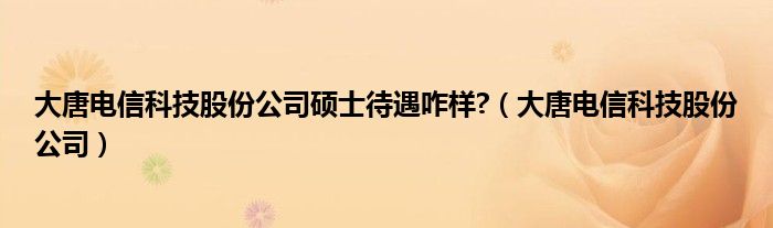 关于大唐电信科技股份公司硕士待遇咋样?,大唐电信科技股份公司这个很多人还不知道,今天菲菲来为大家解答以上的问题,现在让我们一起来看看吧!