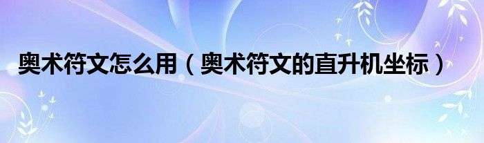 关于奥术符文怎么用,奥术符文的直升机坐标这个很多人还不知道,今天菲菲来为大家解答以上的问题,现在让我们一起来看看吧!