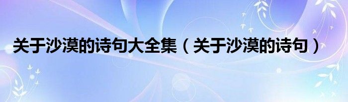 关于关于沙漠的诗句大全集,关于沙漠的诗句这个很多人还不知道,今天菲菲来为大家解答以上的问题,现在让我们一起来看看吧!