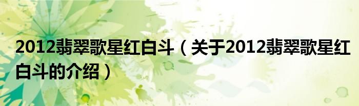 大家好,今天小乐来为大家解答以上的问题。2012翡翠歌星红白斗,关于2012翡翠歌星红白斗的介绍很多人还不知道,现在让我们一起来看看吧!