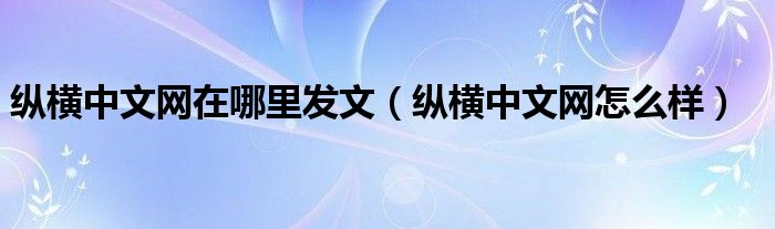大家好,小晋来为大家解答以下问题,关于纵横中文网在哪里发文,纵横中文网怎么样很多人还不知道,今天让我们一起来看看吧!