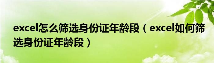 关于excel怎么筛选身份证年龄段,excel如何筛选身份证年龄段这个很多人还不知道,今天菲菲来为大家解答以上的问题,现在让我们一起来看看吧!