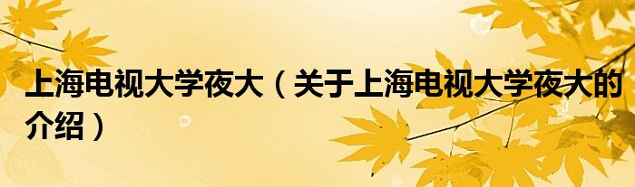 大家好,今天小乐来为大家解答以上的问题。上海电视大学夜大,关于上海电视大学夜大的介绍很多人还不知道,现在让我们一起来看看吧!