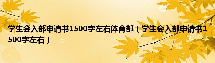 关于学生会入部申请书1500字左右体育部,学生会入部申请书1500字左右这个很多人还不知道,今天菲菲来为大家解答以上的问题,现在让我们一起来看看吧!