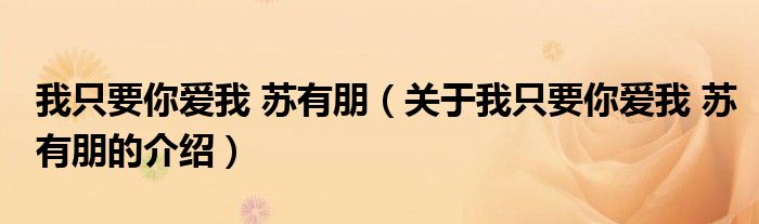 我只要你爱我苏有朋(关于我只要你爱我苏有朋的介绍)