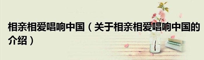 大家好,今天小乐来为大家解答以上的问题。相亲相爱唱响中国,关于相亲相爱唱响中国的介绍很多人还不知道,现在让我们一起来看看吧!