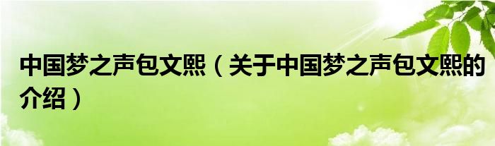 大家好,今天小乐来为大家解答以上的问题。中国梦之声包文熙,关于中国梦之声包文熙的介绍很多人还不知道,现在让我们一起来看看吧!