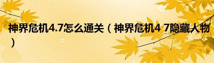 大家好,来宝来为大家解答以下问题,神界危机4.7怎么通关,神界危机4 7隐藏人物很多人还不知道,今天让我们一起来看看吧!